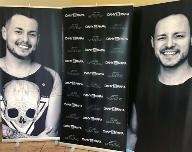 Ele pode ser formado com a aplicação de dois roll up com lona nas pontas, com uma largura de 80cm cada um. E no centro um roll up mais largo, de 150cm. No total são três rol ups completos.